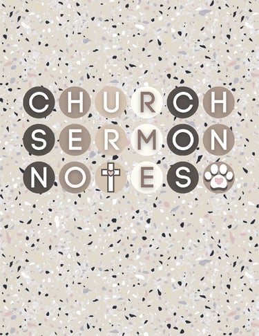 Elevate your worship with this one-of-a-kind 7.5" x 9.25" sermon notes journal—the perfect blend of faith, humor, and charm. Designed for the dog lover, each page offers a space for reflection alongside light dog-breed watermarks and witty "Christian dog" one-liners paired with Bible verses. Whether it's for your own spiritual growth or a lovely gift for a fellow dog-loving believer, this notebook will become a cherished part of your worship routine.