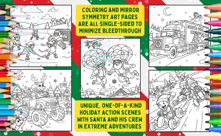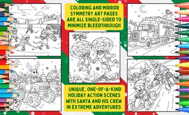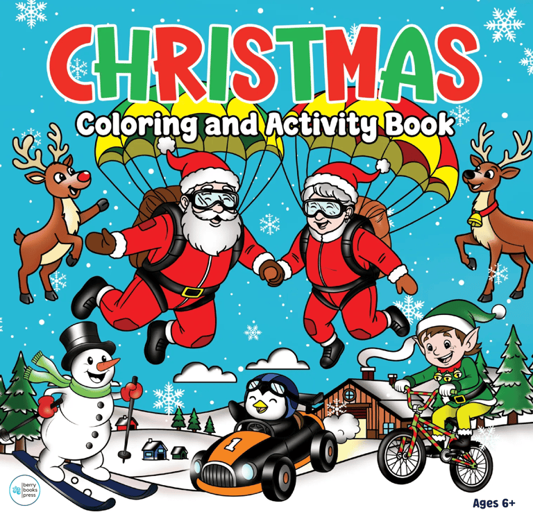 Gear up for holiday excitement and big smiles with this one-of-a-kind Christmas activity book! Packed with high-energy scenes of Santa skydiving, snowmen skiing and elves racing, this book takes Christmas adventures to thrilling new heights! Kids will enjoy coloring, puzzling, creative writing and action-packed holiday magic from cover to cover!