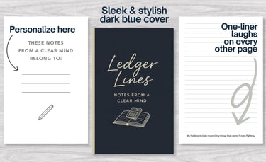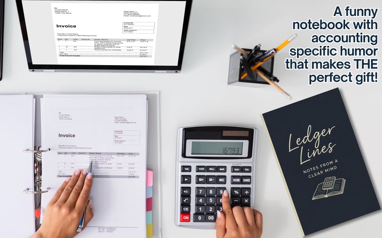 This minimalist finance-themed notebook pairs clean design with subtle, relatable humor about accounting life—from spreadsheets to deadlines. Designed for accountants, bookkeepers, and finance professionals, it fits neatly on any professional desk and is perfect for note-taking, planning, or a smart, relatable gift.