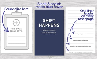 Chaos is inevitable—but now you can laugh through it! Shift Happens is the ultimate funny nurse notebook with hilarious one-liners on every other page. Perfect for jotting down notes, venting frustrations, or surviving 12-hour shifts. Great for nurse gifts, hospital staff appreciation, or just a little sanity saver. This journal brings humor to the hustle—because laughter might be the best medicine after all.