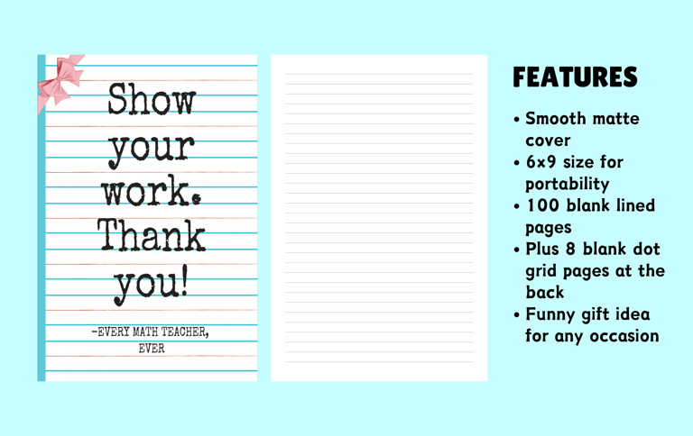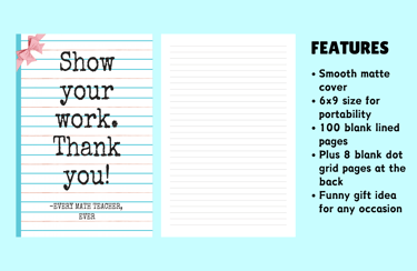 Capture the essence of every math teacher's favorite phrase with this quirky and practical notebook! Ideal for grading, planning lessons, or jotting down ideas, this notebook is both humorous and functional—a perfect addition to any teacher’s desk.