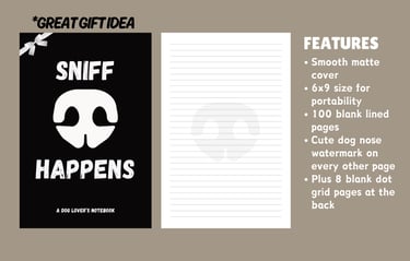 Take your notes to the next level with this humorous dog-themed notebook! It's perfect for writing down your to-dos, reflections or your pup's silly antics. It’s as loyal and dependable as your furry friend!