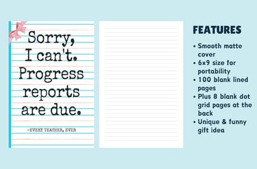 A funny and functional lined notebook for teachers juggling lesson plans, grading, and endless deadlines. With a bold, relatable cover, it’s a classroom conversation starter and a practical choice for teacher appreciation, back-to-school, or a gift for yourself.