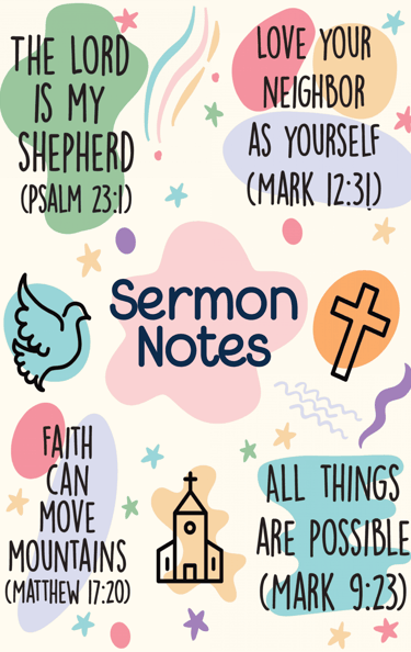 Elevate your sermon experience with our beautifully designed sermon notes journal. This inspirational journal, adorned with uplifting religious quotes and scriptural passages, is the perfect companion for capturing your thoughts and reflections during sermons. This church notebook not only enhances your spiritual journey but also makes a thoughtful gift for fellow believers. Let this notebook be a cherished part of your worship routine.