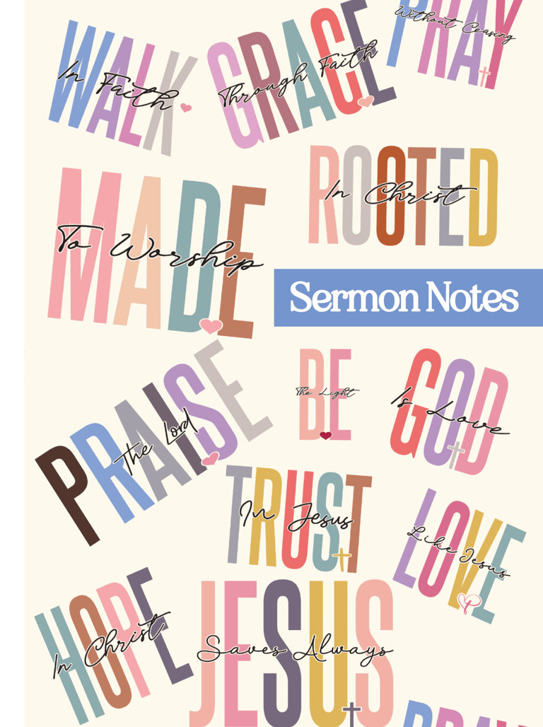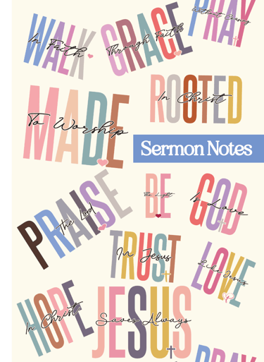 Capture your spiritual journey with our meticulously crafted Sermon Notes Journal. Designed with uplifting words like 'Faith', 'Pray', and 'Grace', this journal is perfect for jotting down notes during sermons and reflecting on personal thoughts. Available in a soothing palette of elegant colors and a convenient 6"x9" size that fits easily in your bag, this journal is as practical as it is inspiring. Add a touch of grace to your devotional routine today.