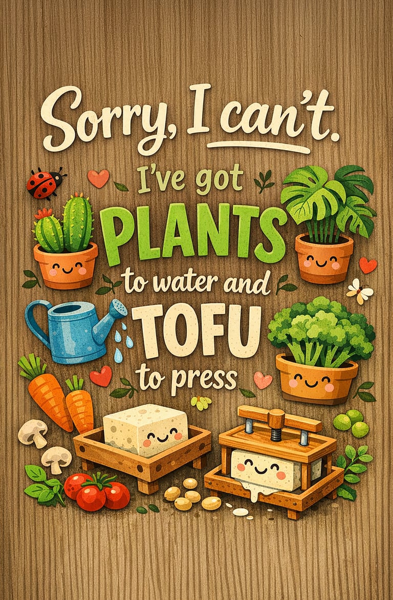 Sorry, I Can't. I've Got Plants to Water and Tofu to Press.